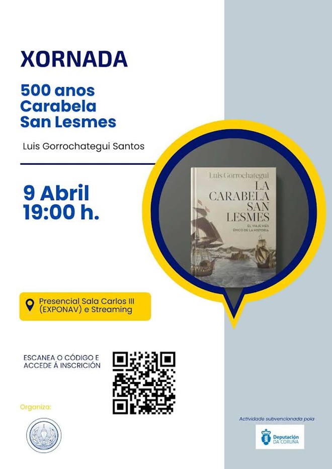 A xornada, subvencionada pola Deputación da Coruña, estará dirixida polo autor do libro “500 anos Carabela San Lesmes”, Luis Gorrochategui Santos, quen ofrecerá un percorrido histórico a través desta expedición e mostrará un novo enfoque sobre a historia da exploración española e o seu impacto nas illas do Pacífico.