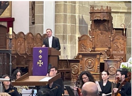En la presentación del concierto tomó también la palabra el autor de la obra, Jorge Grundman, para explicar que, cuando se planteó su creación, le inspiró más la perspectiva de lo acontecido después de la muerte de Jesús y para ello acudió al texto del evangelista San Juan, en los capítulos XIX y XX, a partir de la atmósfera que se crea con el terremoto que narra el evangelista posterior a la muerte de Jesús en la cruz. Con esta idea, y respetando literalmente el texto bíblico, dejó fluir su inspiración con la intención de acompañar musicalmente el mensaje de la resurrección de Cristo, que es transmitido por María Magdalena a los apóstoles Pedro y Juan.