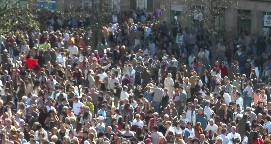 Desde el balcón del Palacio Municipal el Delegado Episcopal, Cándido Otero, explicaba todo lo referente al Encuentro. Y al final rezó un «Ave María» al que se unieron todos los asistentes.