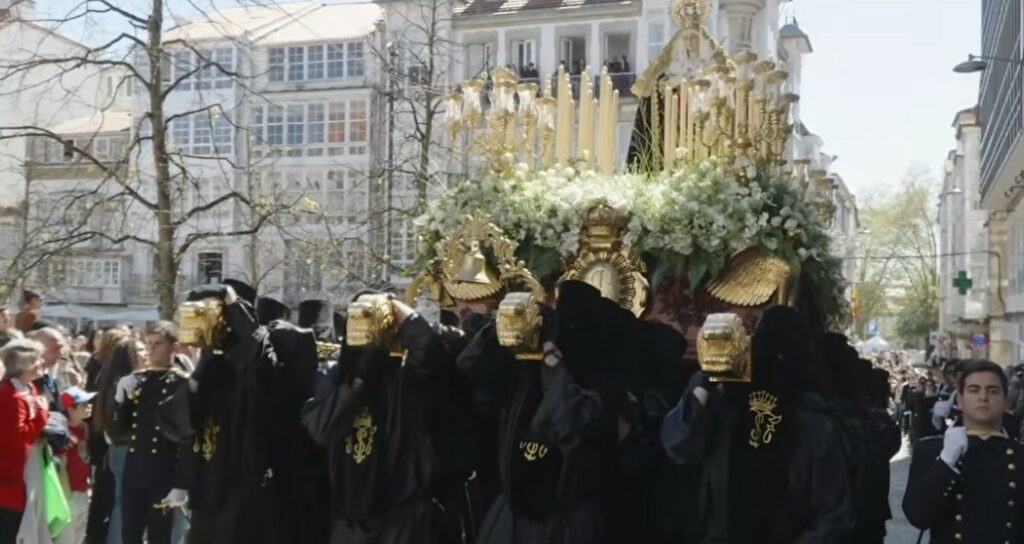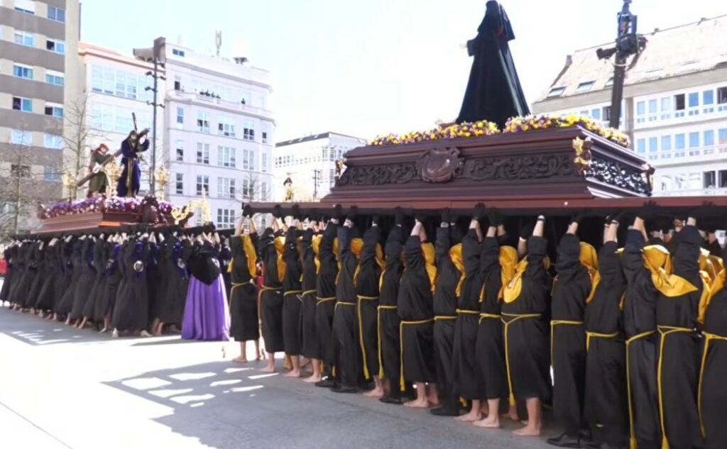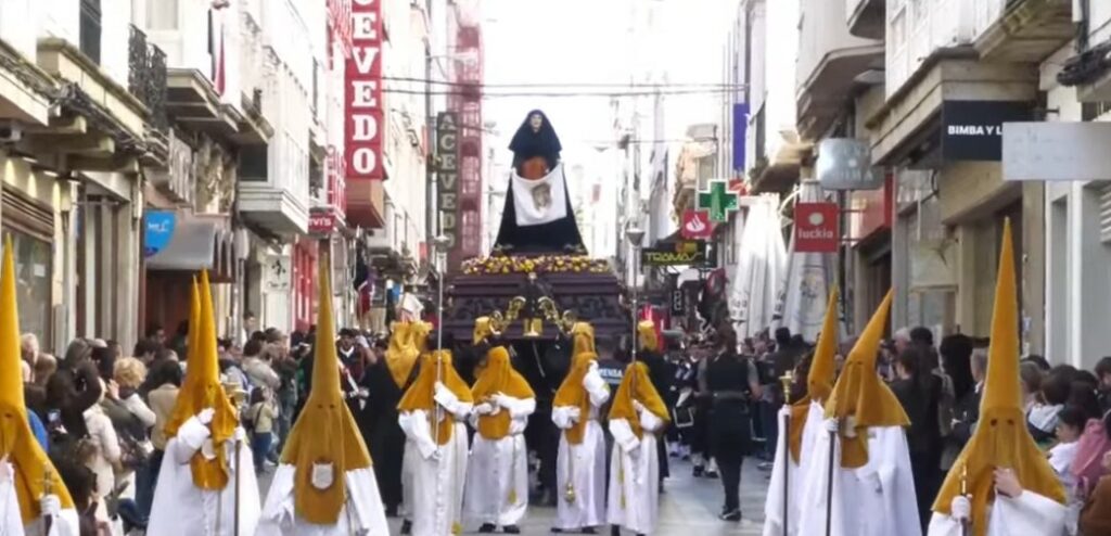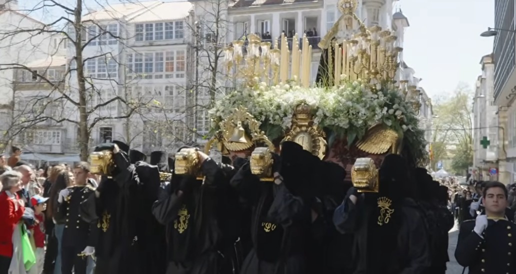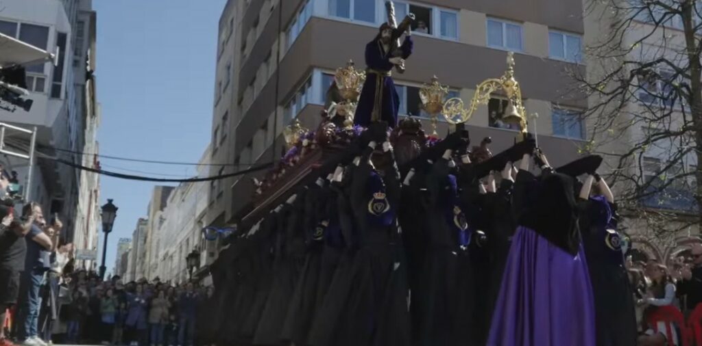 Seguidamente un segundo desfile procesional también con varios tercios en el que figuraban las imágenes de la Verónica, San Juan y María Santísima de los Dolores, algunas de ellas son de las más antiguas de la Semana Santa Ferrolana, que este año cumple el doce aniversario de ser declarada de Interés Turístico Internacional, procedentes de la desaparecida iglesia de San Julián que estaba en la zona portuaria y que se vino abajo como consecuencia de las obras de construcción del Arsenal. Es el caso de la Santa Mujer Verónica y de la Virgen de los Dolores, ambas obras anónimas datadas en el siglo XVIII, con las que va San Juan Evangelista es obra de Fernando Murciano–el original es de la misma época que las otras dos imágenes, pero el que sale en procesión es una réplica que la Cofradía estrenó en 2022- para preservar la talla anónima más antigua. Y la de Jesús Nazareno, una obra de Guerra Felipe también de gran antigüedad, de 1863. Se dirigió por Real hasta Tierra y ya seguidamente con entrada en la plaza de Armas.
