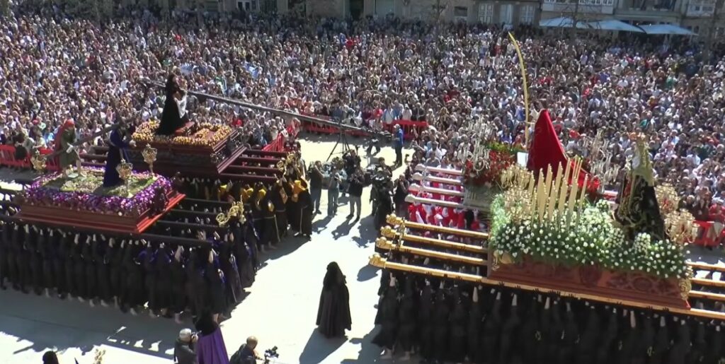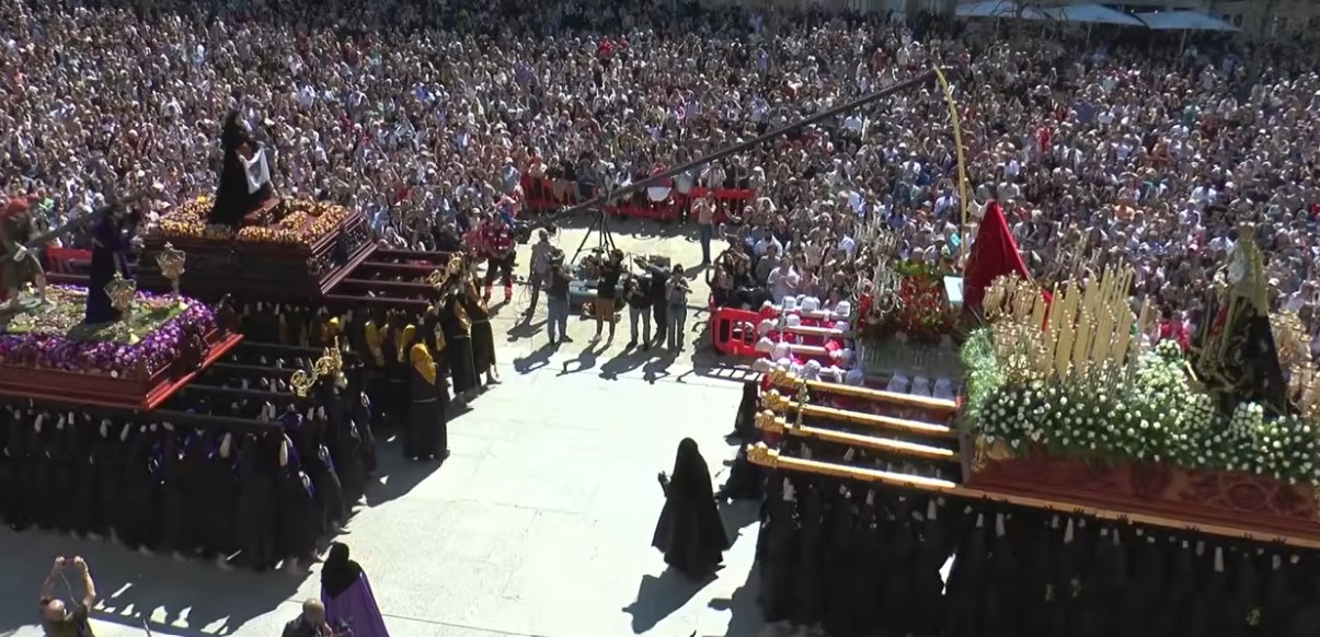 El público aplaudía los distintos movimientos de los tronos, muy especialmente cuando se realizaban los el encuentros, el de la imagen del Nazareno con la Verónica, posteriormente con San Juan.