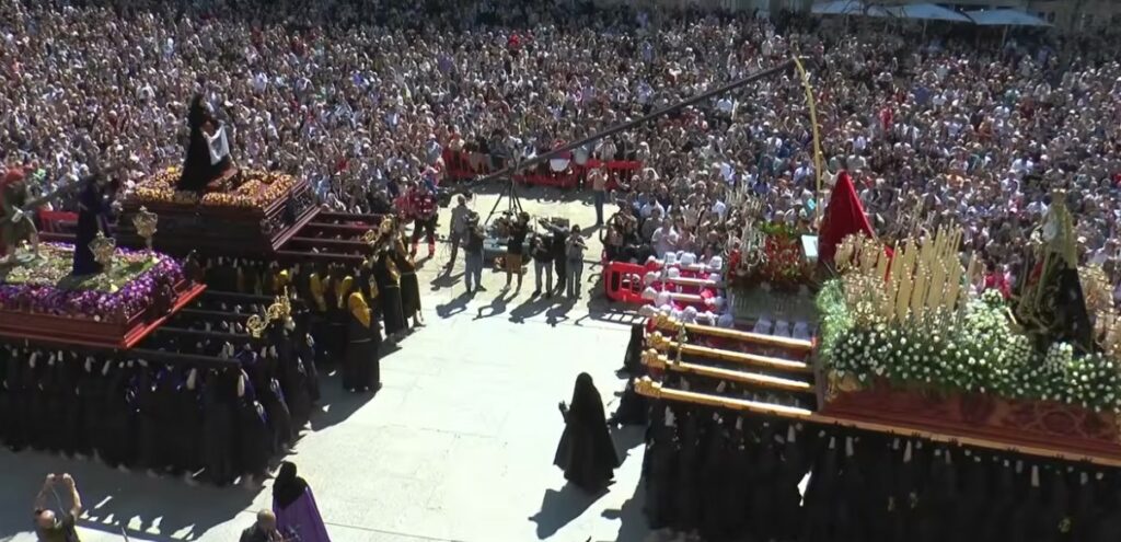 Y ya finalmente los cuatro pasos terminando con un «hasta el cielo» realizado por los portadores de los cuatro pasos.con el de la Dolorosa en presencia de las de San Juan y Verónica.