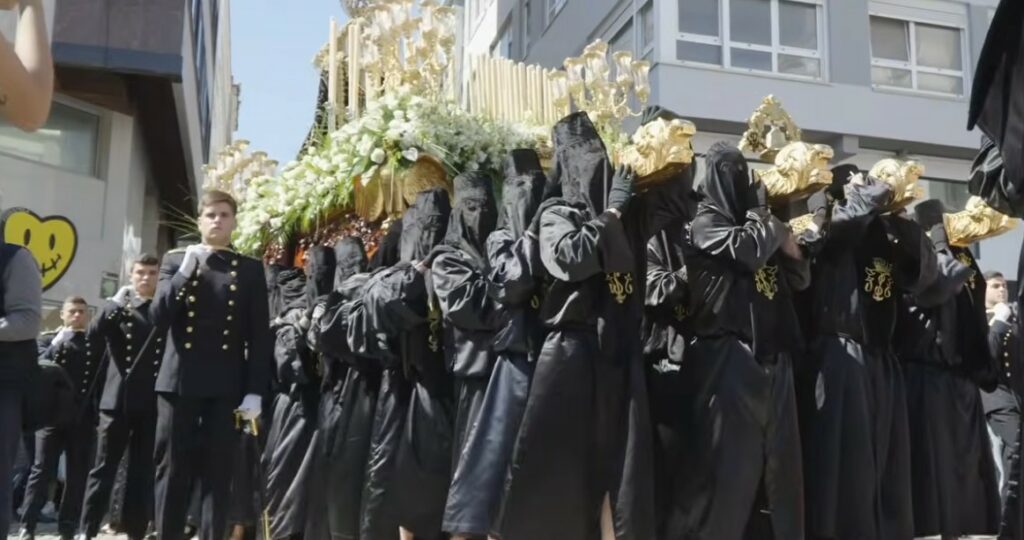 Al trono de la Dolorosa le daban escolta de honor un grupo de alumnos, ferrolanos, de la Escuela Naval Militar de Marín y que han formado parte como cofrades o portadores de Dolores.