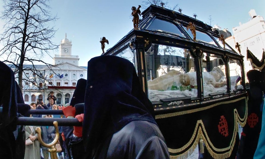 La Cofradía del Santo Entierro se caracteriza por su rigor, religiosidad y tradición. Es una hermandad creada hace 75 años, expresamente con la finalidad de representar cada Viernes Santo el entierro de Jesús y nunca faltó a su cita, ya que en caso de mal tiempo la procesión se celebra dentro del templo.