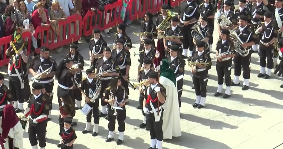 Y tras un nuevo «al cielo» con los tronos la Agrupaciòn Musical Agarimo interpretó el Himno de la Alegría.