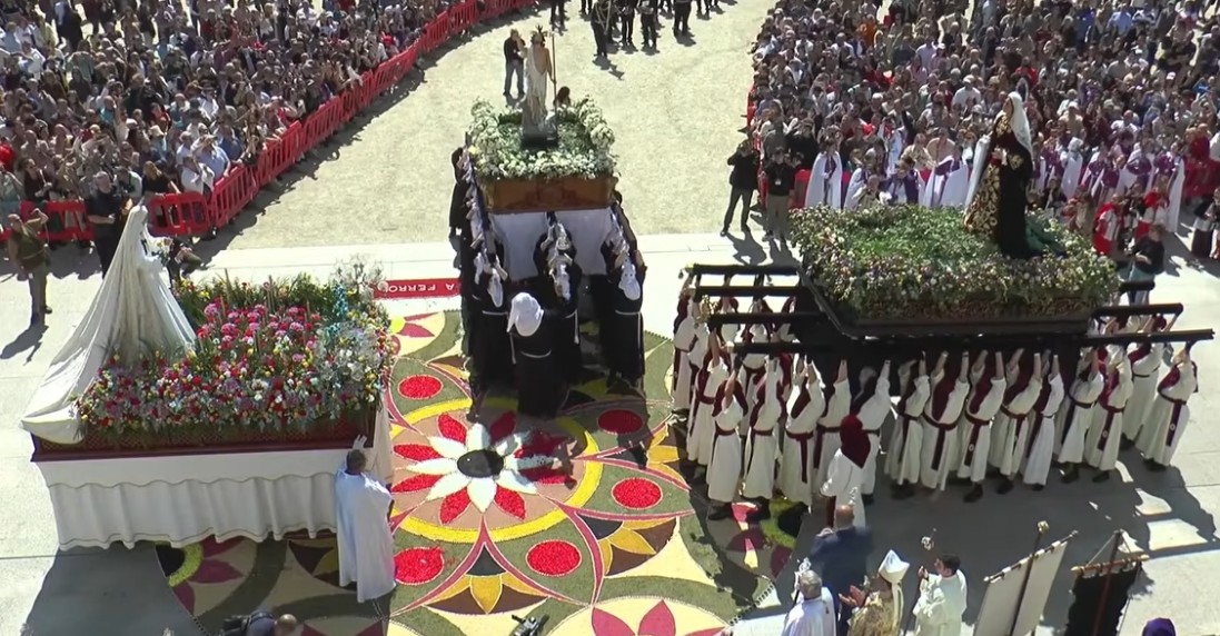 Se cumplen veinte años del Gozoso Encuentro y la Procesión de la Resurrección que instituyeron en 2006 las tres cofradías anteriormente se celebraba este acto en la plaza de la Constitución.