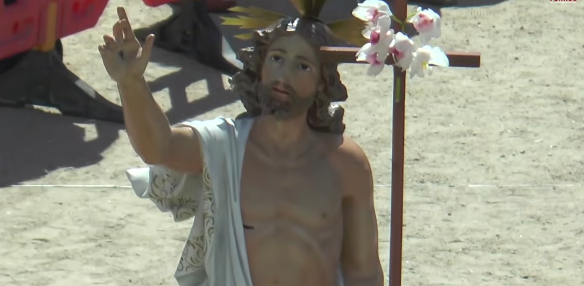 Allí se depositaron los pasos del Resucitado y la Magdalena mientras que el de la Virgen de la Luz quedó en la calle de la Iglesia.