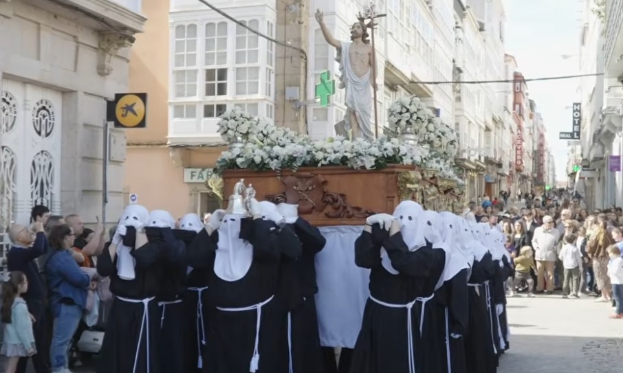 Las tres cofradías hermanadas de la Semana Santa de Ferrol, Merced, Soledad y las Angustias, celebraron conjuntamente en la plaza de Armas, lo hacen desde el año 2004, el Gozoso Encuentro y la Procesión de la Resurrección, con la que culminan los actos de la Semana Santa Ferrolana.