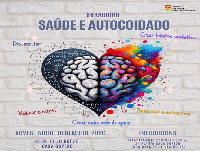 O Concello das Pontes presenta o taller “Saúde e Autocoidado”, unha iniciativa centrada na recuperación psicolóxica e emocional de persoas que padeceron ou padecen unha enfermidade, así como das persoas coidadoras, co obxectivo de mellorar o seu benestar e calidade de vida.