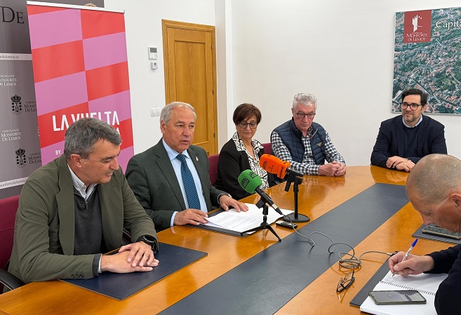 El acto, que tendrá lugar el 6 de mayo, ha sido presentado este miércoles en Monforte por parte de su alcalde, José Tomé, y el director general de La Vuelta, Javier Guillén; además del gerente de Carrefour Lugo, Roi Conde, y otros representantes municipales.