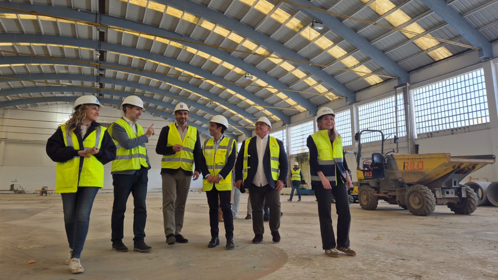Ferrol continúa dando pasos firmes hacia la consolidación de la ‘Cidade do Deporte’, un ambicioso proyecto que transformará antiguos espacios en desuso en un moderno complejo deportivo al servicio de la ciudadanía. Durante una visita realizada este jueves a las obras que se están realizando en FIMO y más en concreto al pabellón 5, el alcalde José Manuel Rey Varela, el presidente de la Real Federación Galega de Fútbol, Pablo Prieto, y el conselleiro de Presidencia, Justicia y Deportes, Diego Calvo, comprobaron el buen ritmo de los trabajos.