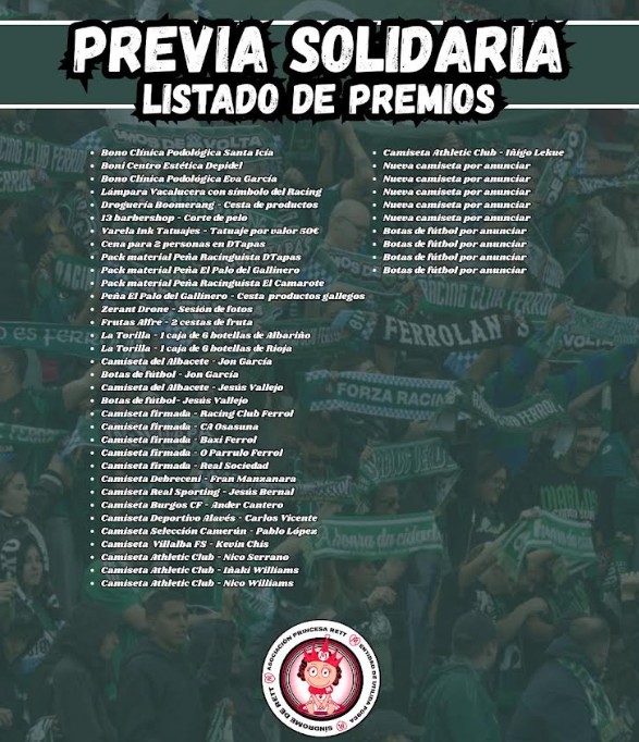 Habrá también algo de música, venta de bocadillos, bebidas y de artículos de la Asociación Mi Princesa Rett. A partir de las 20:15, la afición se desplazará desde Canido al Estadio de A Malata para presenciar el encuentro ante el Castilla. Los bares D Tapas y El Clavel, así como el Local Social de Canido, serán los puntos de referencia de esta demostración de solidaridad racinguista.