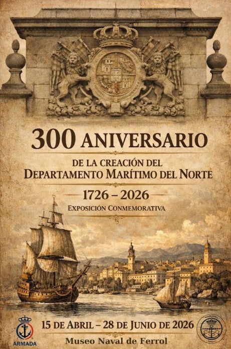 Este miércoles, a las 12 horas, está prevista la inauguración oficial en el Museo Naval, de la exposición conmemorativa del 300 aniversario de la creación del Departamento Marítimo del Norte (1726-2026). El acto será presidido por el Almirante Jefe del Arsenal, vicealmirante Vicente Rubio Bolívar, al que acompañarán el alcalde de Ferrol, José Manuel Rey Varela y el director del museo, CF Juan Carlos Gómez Corbalán, así como miembros de la Armada y de asociaciones culturales, vecinales, y sociales ferrolanas.