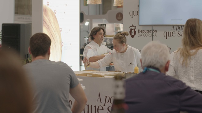 A partir das 13:00 horas volverán os showcookings de Juan Crujeiras, mentres que desde as 15:00 horas Iria Espinosa ofrecerá novas elaboracións gastronómicas para pechar a programación da Deputación neste foro profesional internacional.