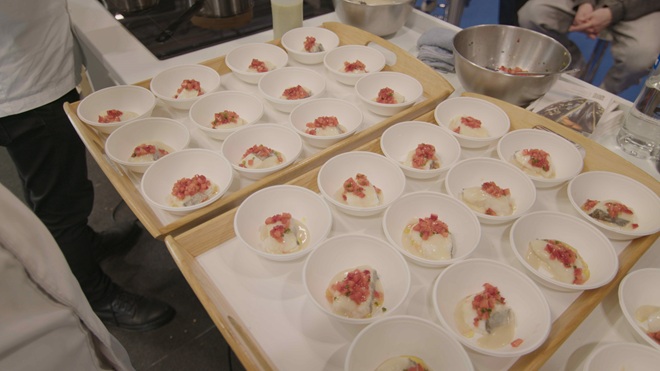 Pola tarde foi a quenda de Iria Espinosa, do restaurante con Árbore da Veira (A Coruña) —distinguido cunha estrela Michelin—, que presentou elaboracións como porro asado con guiso meloso de mans de porco, gamba e salsa bearnesa, ademais de vieira con manteiga de miso, caviar de codium e cacahuete tostado.