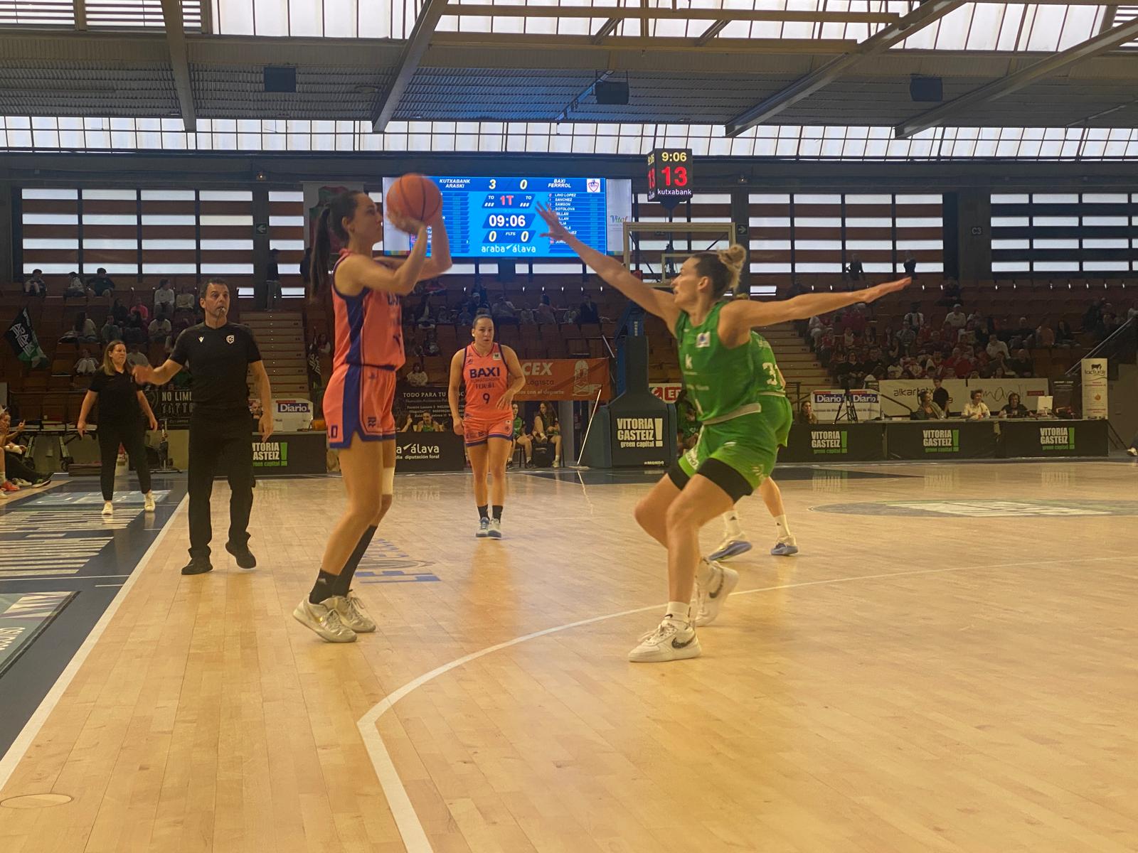 El Baxi Ferrol quería empezar fuerte por todo lo alto con un triple de Blanca Millán que era rápidamente respondido por Urbaniak, lo que motivaba al cuadro vasco que aprovechaba los fallos de las ferrolanas para abrir poco a poco más las distancias, yéndose por encima de los diez puntos con triples de Lahtinen y Noa Morro. Esto hacía mucho daño a un Baxi Ferrol que no daba reaccionado y un Kutxabank Araski totalmente crecido, con el apoyo de su afición y el viento de cara para dejar el partido con 68-48 para el último cuarto.