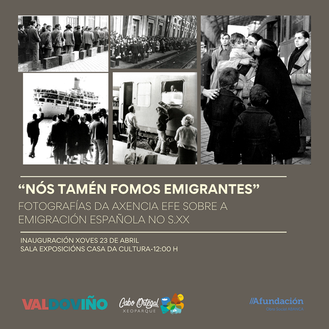 A exposición «Nós tamén fomos emigrantes» chega a Valdoviño da man de Abanca e AFundación. A mostra inaugurarase este mesmo xoves 23 de abril ás 12:00 horas, na sala de exposicións da casa da cultura, onde permanecerá ata o 22 de maio.