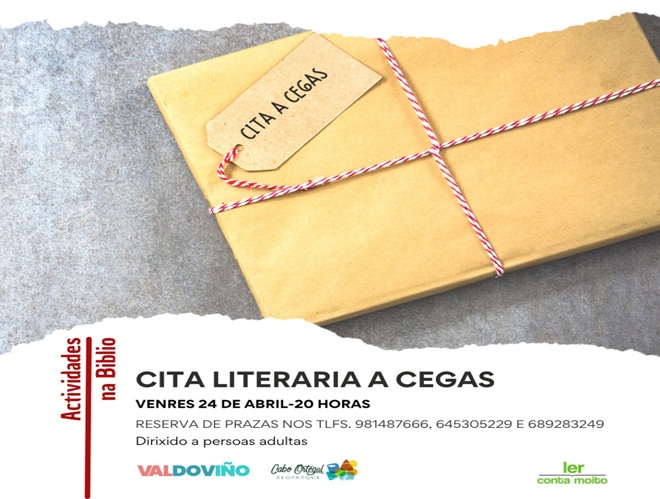 O Concello de Valdoviño proponos unha Cita literaria a cegas este venres na biblioteca municipal. Para participar neste novo proxecto dirixido ao público adulto é preciso acudir ás 20:00 horas cun libro envolto a modo de agasallo.