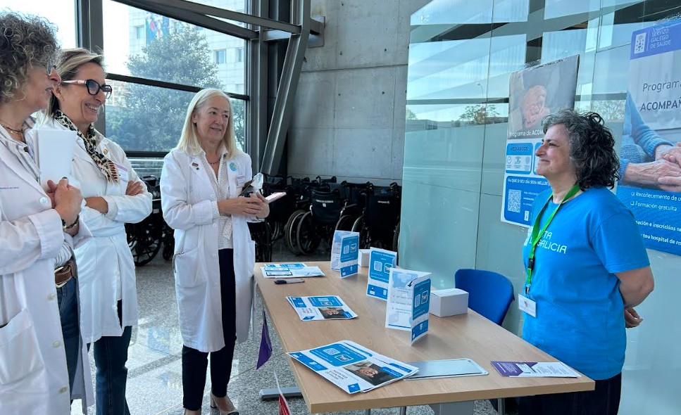 Por último, recordar que, en julio del pasado año 2025, se activaba el programa ASF Acompaña, iniciativa de Acompañamiento en los Hospitales y Centros de Salud, impulsado por las Consellerías de Cultura, Lengua y Juventud y la de Sanidad de la Xunta de Galicia; y se iniciaba de manera efectiva en el pasado mes de noviembre en el Hospital Naval del Complejo. Es un proyecto de humanización para acompañamiento, apoyo e información, con personas voluntarias, a las personas usuarias que reciben asistencia sanitaria, coordinado por la Subdirección de Humanización, Calidad y Atención a la Ciudadanía. En la actualidad, el número de voluntarios ya creció hasta los 28, y son personas de diversos ámbitos y perfiles profesionales, y tanto del área como totalmente ajenos al ámbito sanitario. Esta mañana, las personas con experiencia en él informaban a todo aquel que se había querido acercar, en su mesa informativa en el marco de la Feria de la Salud. Estas personas voluntarias se reparten mañana y tarde en casi todos los días de la semana. El acompañamiento suele ser la demanda de los responsables de las Unidades, del propio paciente, e incluso desde los centros de salud, sobre todo en aquellos casos en el que el voluntariado es para acompañar a alguna consulta o prueba. En ese sentido, recordar que cualquier profesional, paciente o familiar puede solicitar el acompañamiento del voluntariado, y puede ser en diversas modalidades.