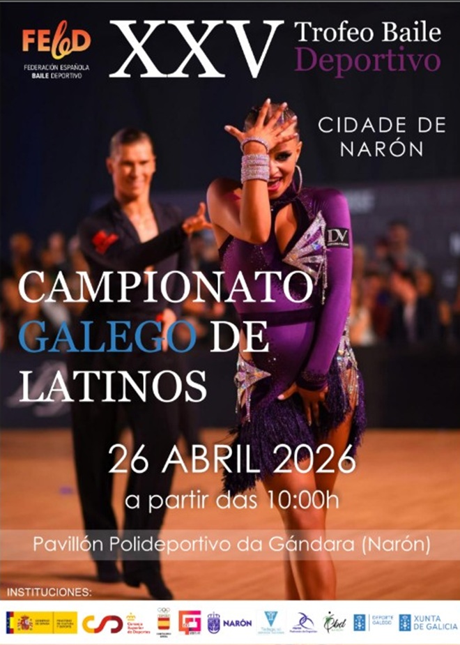 A partir das 9.30 horas disputarase o XXV Trofeo de Baile Deportivo Cidade de Narón, unha cita xa consolidada que inclúe categorías de ritmos caribeños, danza coreográfica, estándar e latinos. Pola tarde, o protagonismo será para o Campionato Galego de Latinos, que lle porá o ramo á fin de semana.Na presentación das probas, o concelleiro de Deportes, Ibán Santalla, puxo en valor o impacto dun evento destas características: “Falamos dunha fin de semana na que Narón se enche de actividade deportiva e tamén de xente chegada doutros puntos de Galicia, o que sempre ten unha repercusión positiva para a cidade”.