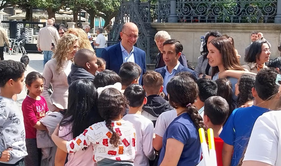 «Leer es una de las formas más eficaces de ser libres», ha afirmado el alcalde, José Manuel Rey Varela ante el alumnado del colegio Ángela Ruiz Robles, parafraseando al filósofo Emilio Lledó, en un acto que ha llenado la plaza de la Constitución de escolares, autores y libreros.