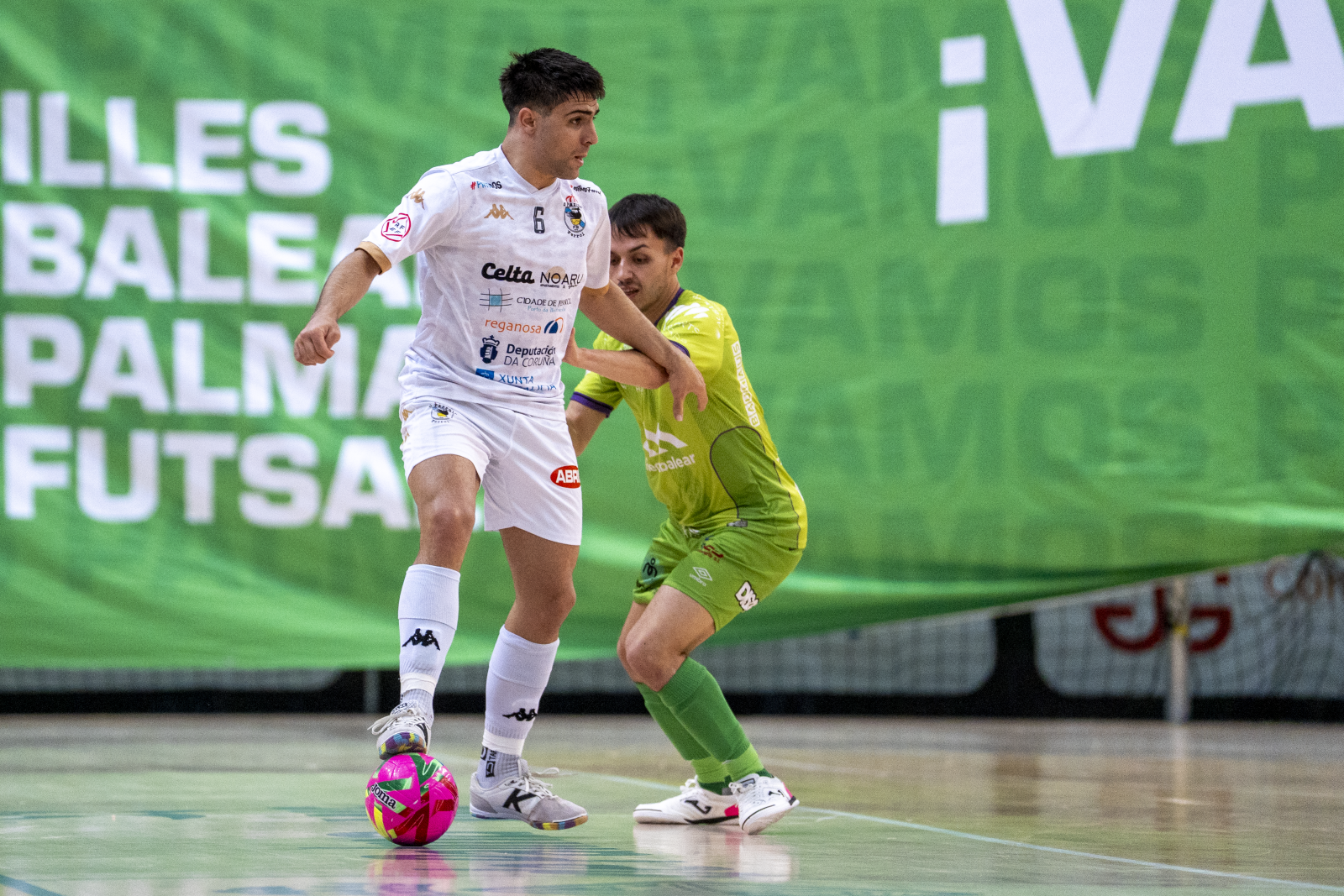 Novoa quería compensar esto en los ferrolanos, poniendo a prueba el esquema de juego del Illes Balears Palma Futsal, en una buena jugada personal regateando a dos jugadores y quedándose solo delante de Dennis, pero su disparo dentro del área lo adivinaba el meta.