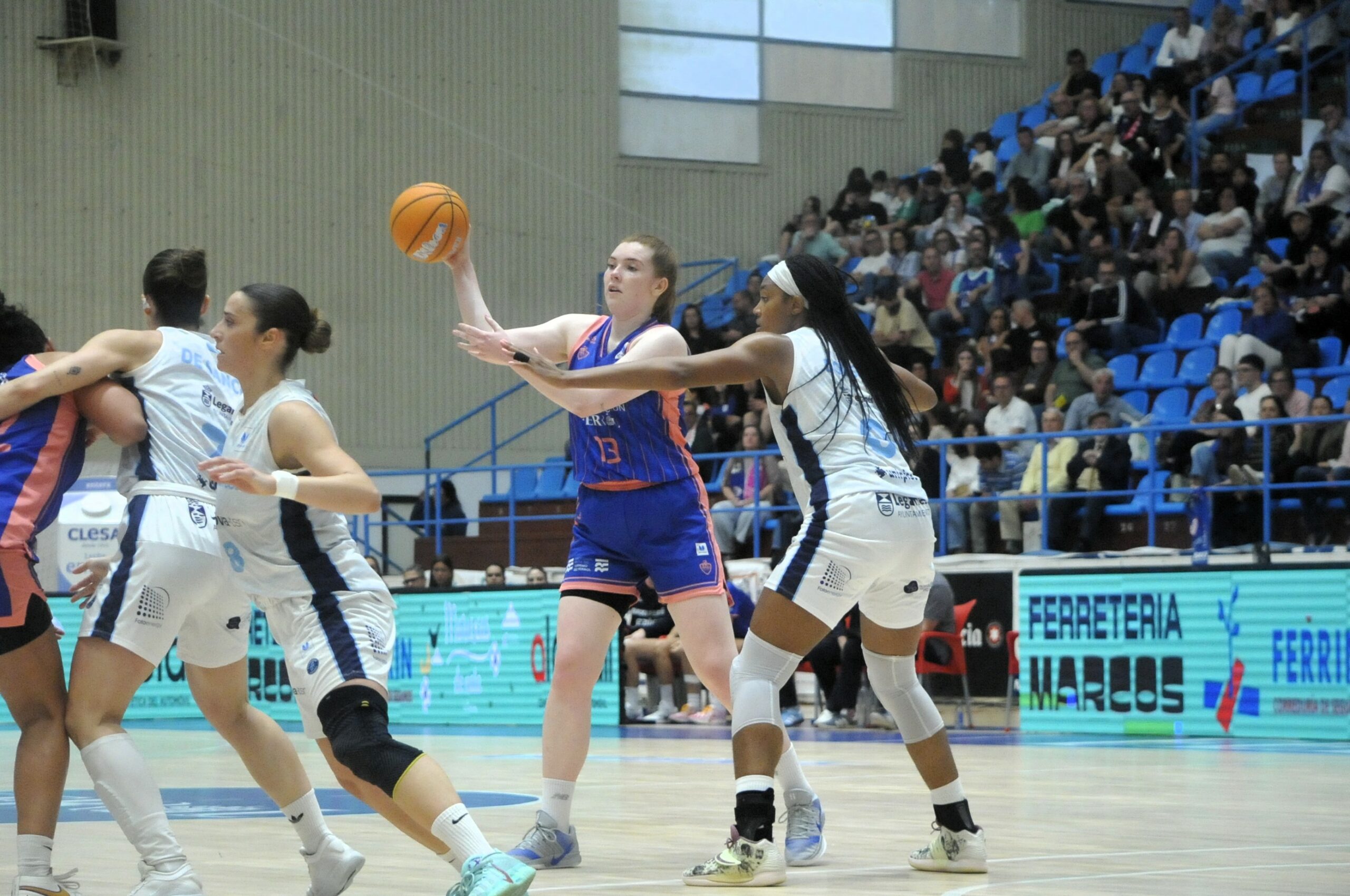 Lejos de bajar el ritmo, el Baxi Ferrol mantuvo su exhibición en el segundo periodo, con aportaciones repartidas entre jugadoras como Ine Joris, Alba Sánchez-Ramos o Clementine Samson. La ventaja llegó a superar los treinta puntos en medio de una grada entregada, que celebraba cada acción como si de una final se tratase, y aplaudiendo la entrada en pista de la canterana Irene Somorrostro. Al descanso, el luminoso señalaba un claro 54-20.
