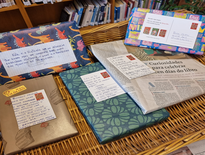 A Biblioteca Municipal acollía a actividade, na que as participantes acodían cos seus libros envoltos a modo de agasallo. Xa no centro de lectura, persoal municipal entregábanlles unhas tarxetiñas para que escribisen unha breve reseña das obras, evitando mencionar o título, e xuntaban as publicacións nunha cesta agardando ao remate da función anunciada, e para sorpresa do público, protagonizada polo grande narrador Caxoto.