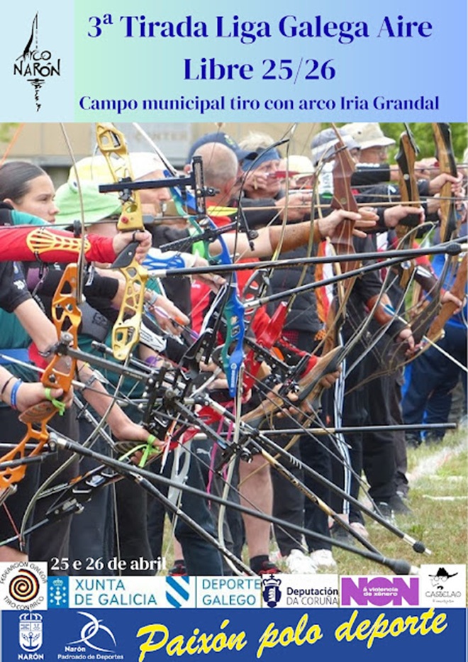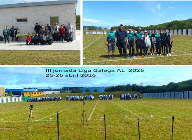 Este pasado fin de semana se celebró en el Campo Municipal Tiro con Arco ‘Iria Grandal’ de Narón la 3ª jornada (de las 5 que consta) de la Liga Galega de Tiro con Arco 2026. Competición con formato de ‘solo round’ (72 flechas lanzadas en 12 turnos de 6 flechas cada uno). 25 deportistas de toda Galicia, pertenecientes a más de 25 clubes, participaron a lo largo del fin de semana en esta prueba. Mucho viento en la tarde del sábado que perjudicó la consecución de grandes marcas, pero muy buen tiempo para competir en la mañana del domingo.