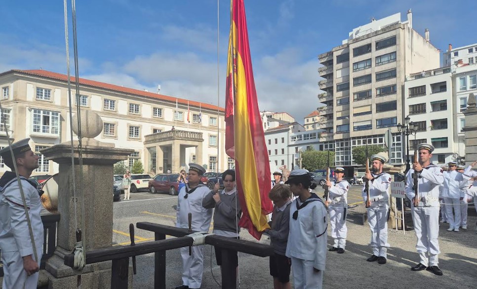 El izado solemne tendrá lugar a 10:00 horas de este jueves, día 30 de abril, tomando parte en su realización, alumnos de 6º de primaria del Colegio Tirso de Molina y presidido por el Ayudante Mayor del Arsenal de Ferrol, el capitán de fragata, David Almeida García.