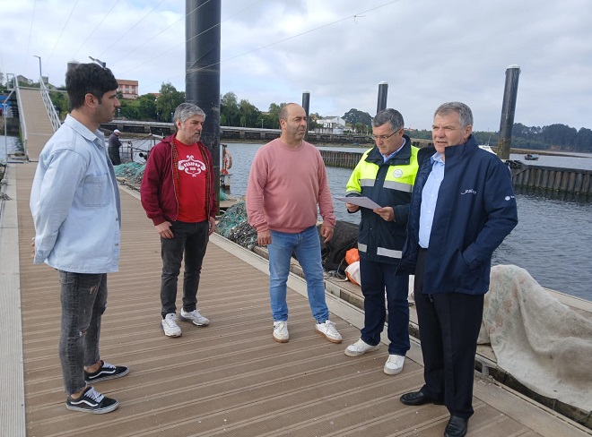 O presidente do ente público visitou a dársena e informou á confraría da nova licitación da estabilización do noiro da zona traseira da lonxa e das previsións de comezo da dragaxe neste verán.