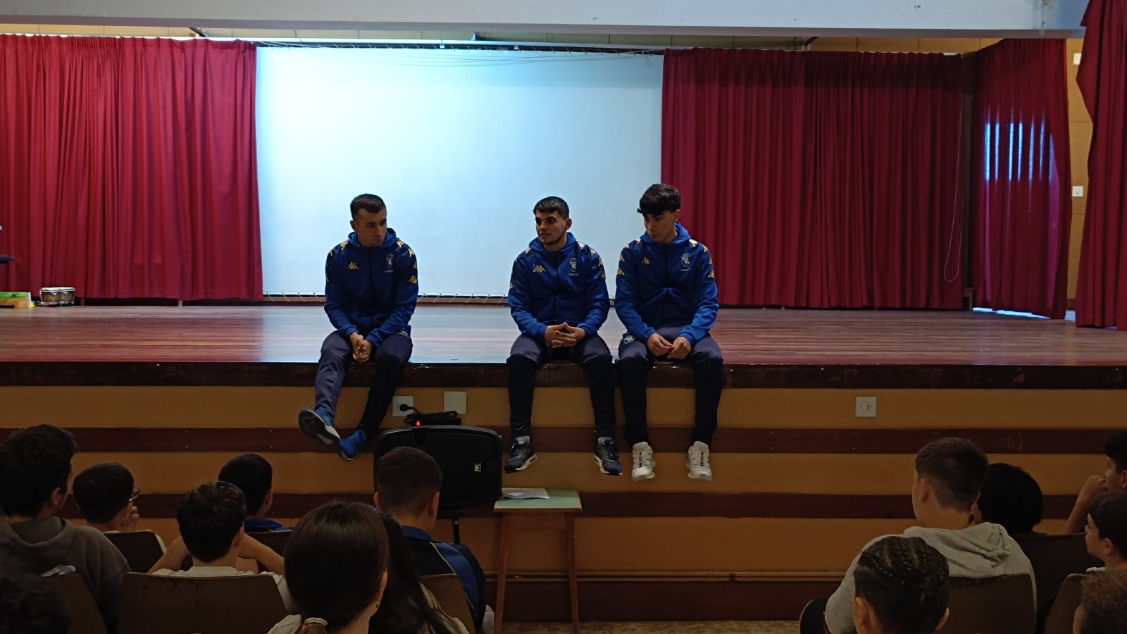 Los jugadores también explicaron cómo es su día a día en un club de Primera División, además de relatar vivencias personales y deportivas. La sesión sirvió igualmente para fomentar valores asociados al deporte y la importancia de mantener hábitos de vida saludables. La visita concluyó con una pequeña exhibición en el gimnasio del centro.